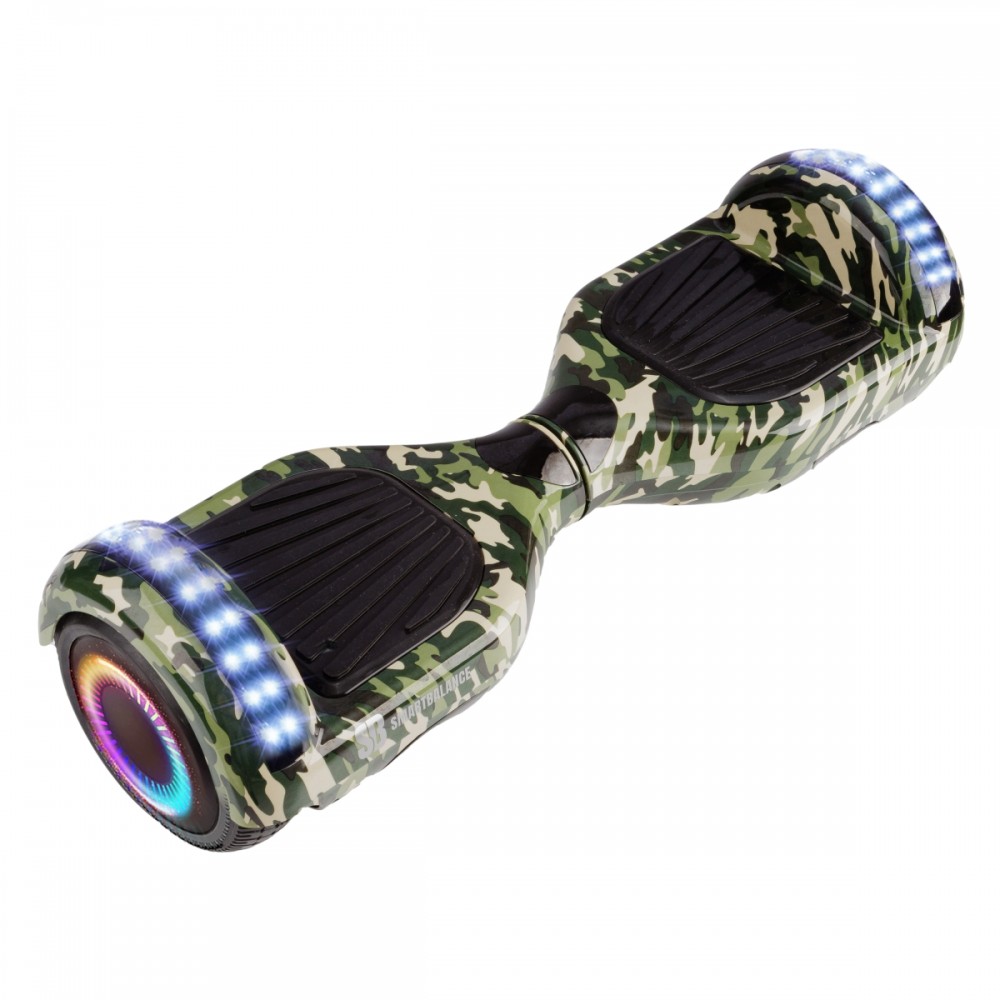 Elektromos Hoverboard csomag Komfortos Üléssel, 6.5 colos, Regular Camouflage PRO, Nagy Hatótávolság, Fehér Szivacsos ülés, Smart Balance