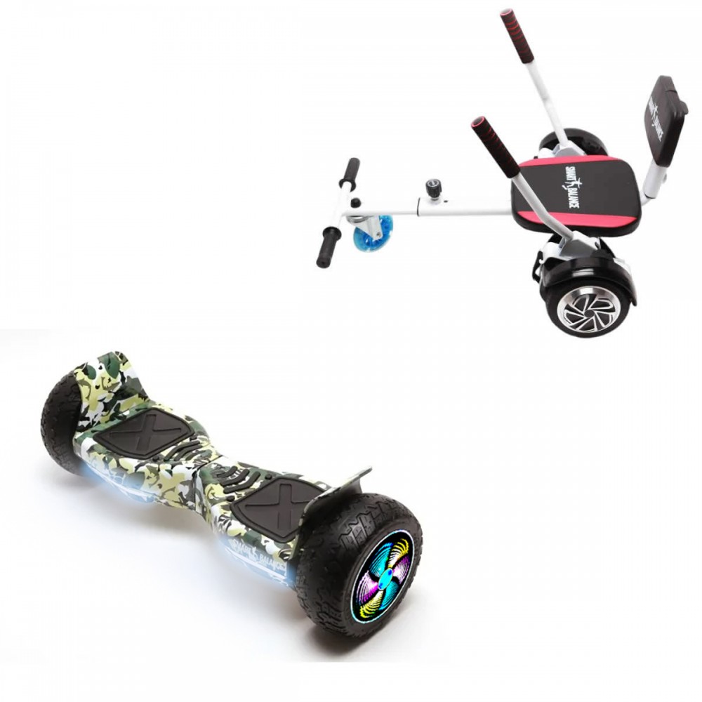 Elektromos Hoverboard csomag Komfortos Üléssel, 8.5 colos, Hummer Camouflage PRO, Nagy Hatótávolság, Fehér Szivacsos ülés, Smart Balance