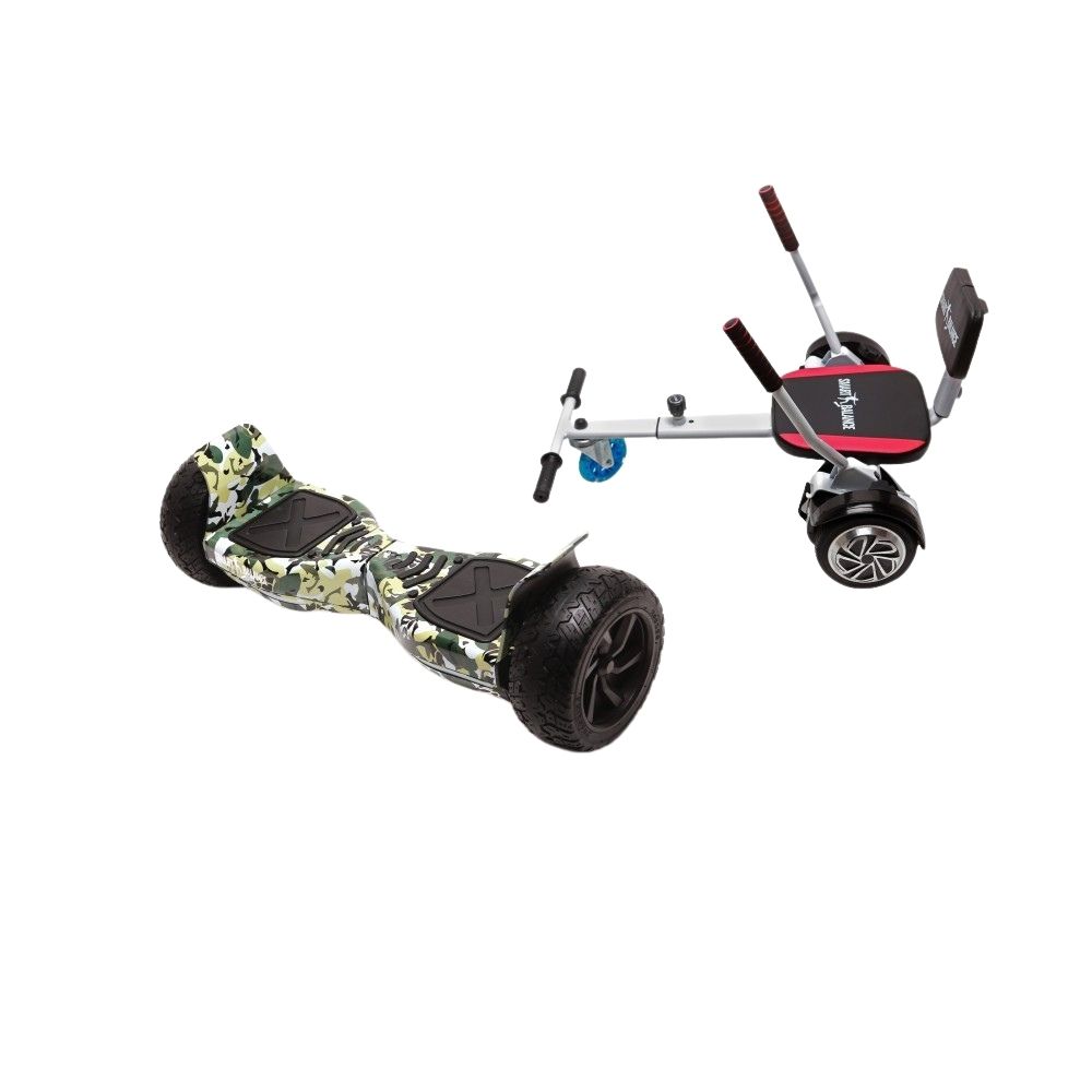 Hummer Camouflage All-Terrain Hoverboard Szett Komfortos HoverKart Üléssel – 8.5” Kerekek, Bluetooth Hangszórók, LED Fények, Önegyensúlyozás, 15km hatótávolság, 700W teljesítmény, 4Ah Samsung cellás akkumulátor, Smart Balance